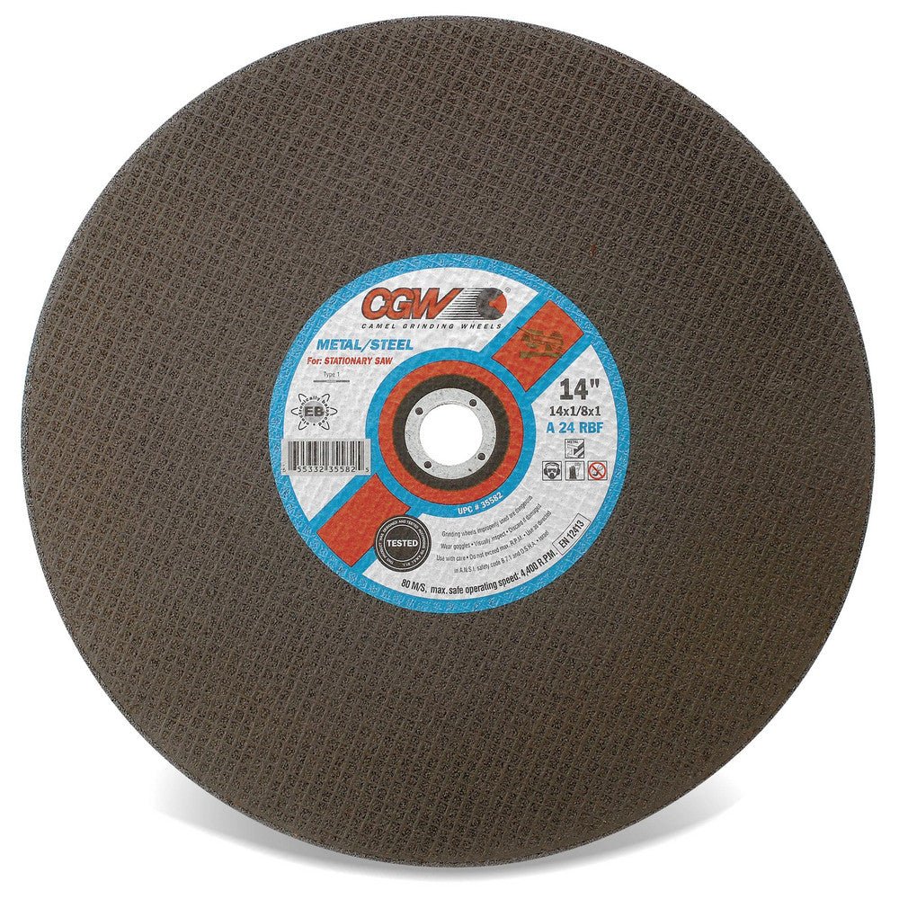 CGW 70109 Cut-Off Wheel: Type 1, 20" Dia, 3/16" Thick, 1" Hole, Aluminum Oxide Reinforced, 24 Grit, 3100 Max RPM, Use with Stationary Saw