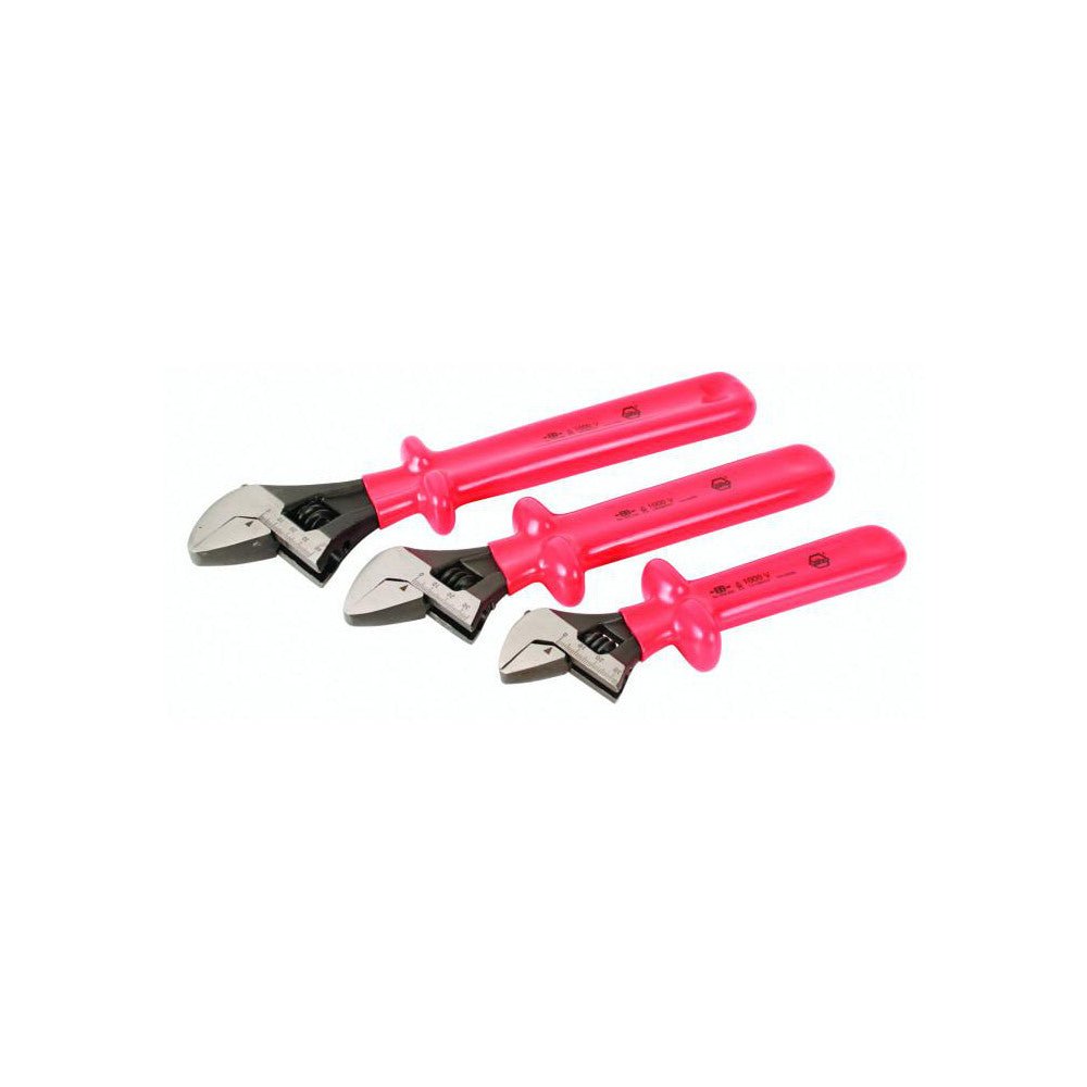 Wiha 76290 Insulated Adjustable Wrench Set: 3 Pc, 10" 12" & 8" Wrench, Inch Zinc-Plated